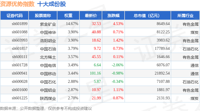 资金流向方面,资源优势(399319)指数成份股当日主力资金净流入合计11.25亿元,游资资金净流出合计4.28亿元,散户资金净流出合计6.97亿元。成份股资金流向详情见下表: