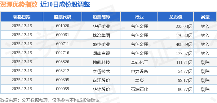 近10日内资源优势(399319)指数成份股做了调整,新纳入了4只股票,剔除了4只股票。