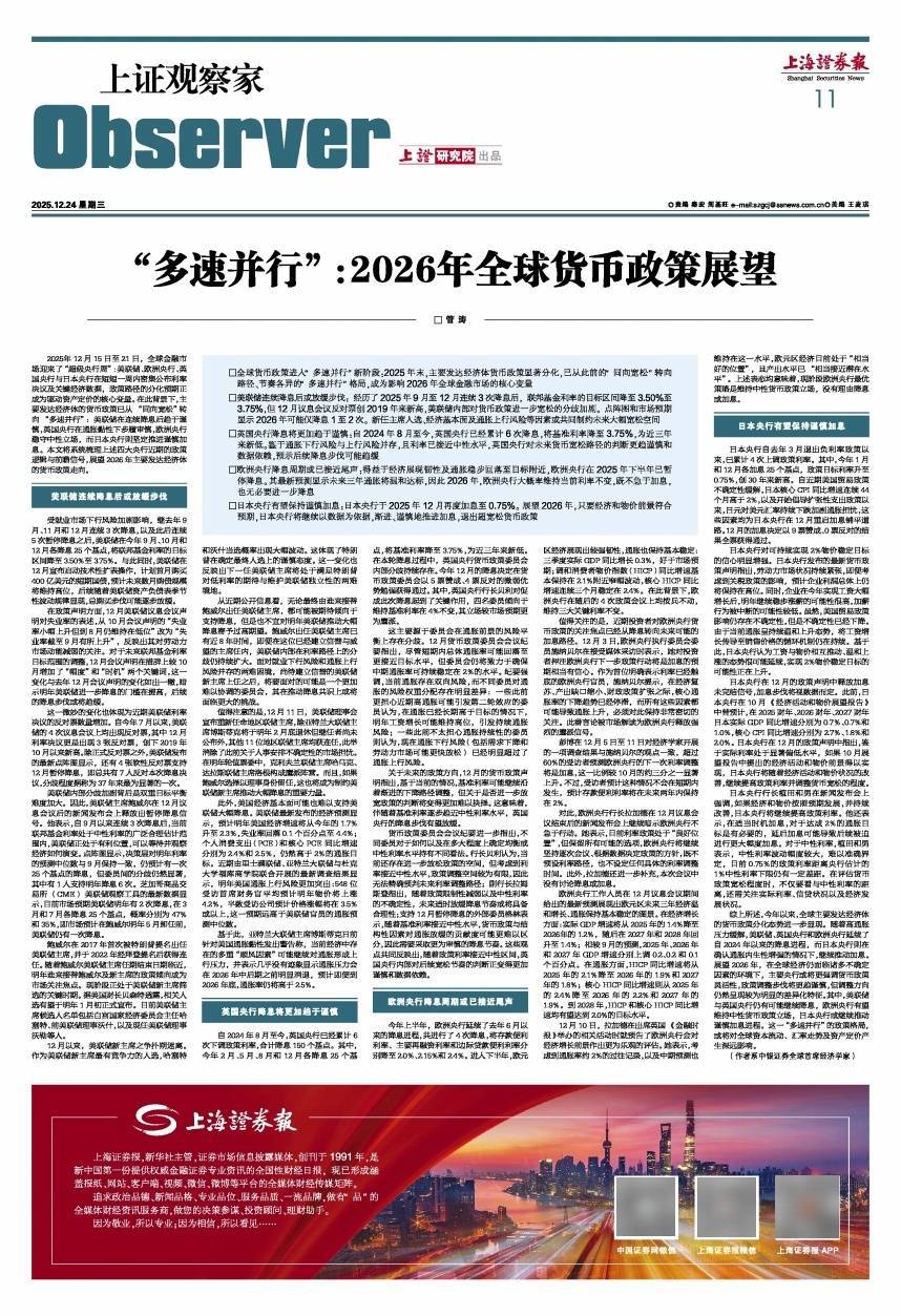 上证观察家 | “多速并行”:2026年全球货币政策展望