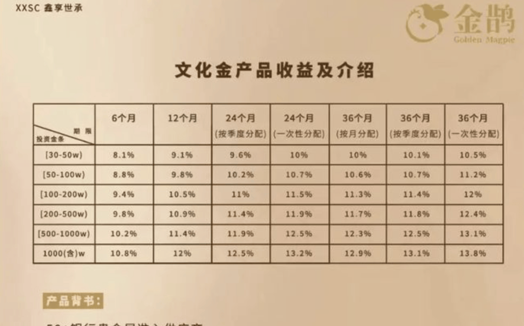但第一财经记者获得的多份材料显示,金雅福体系内,多款产品均以“黄金委托购销”为名,通过多重合同与关联主体设计, 向投资者提供年化8%-14%、普遍超过10%的收益承诺。