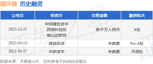 证券之星消息,根据天眼查APP于12月25日公布的信息整理,深圳瑞沃微半导体科技有限公司A轮融资,融资额数千万人民币,参与投资的机构包括中信建投资本,西湖科创投,南山战新投。