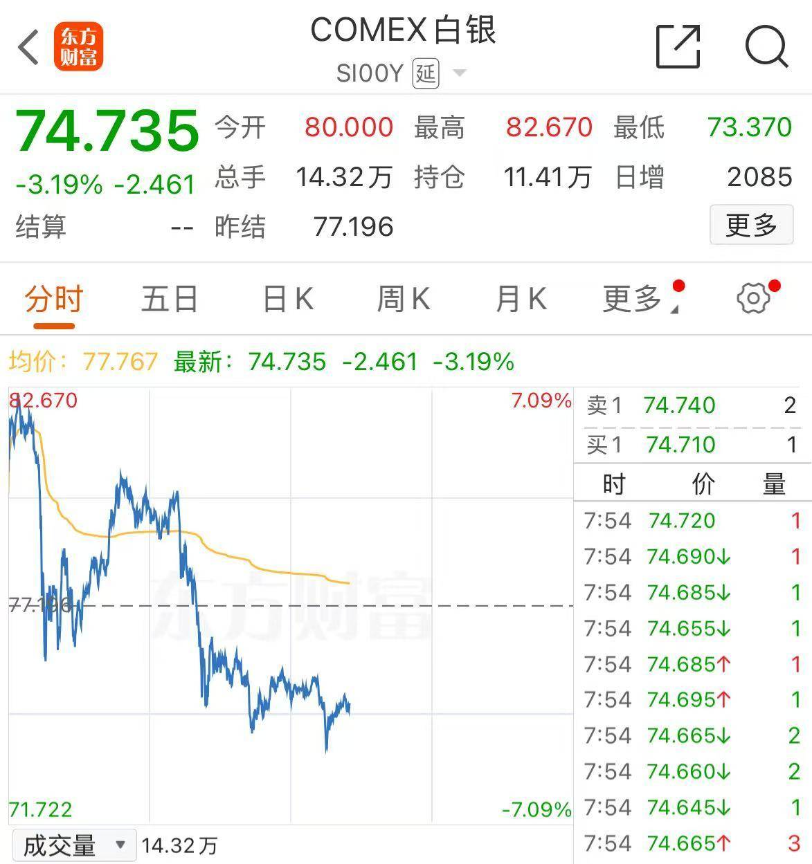 此外,COMEX白银跌超3%,伦敦金现、COMEX黄金跌近2%,现货钯金跌近12%,NYMEX钯跌超10%,现货铂金跌近6%,NYMEX铂跌超6%。