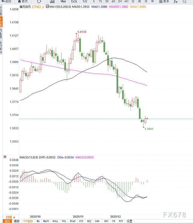 在油价维持稳定且美元动能不足的情况下,USD/CAD短期更可能运行于1.3620—1.3800区间。若油价进一步走强,汇价存在下探区间下沿的风险;反之,若美元出现阶段性反弹,汇价或再次测试上方阻力。