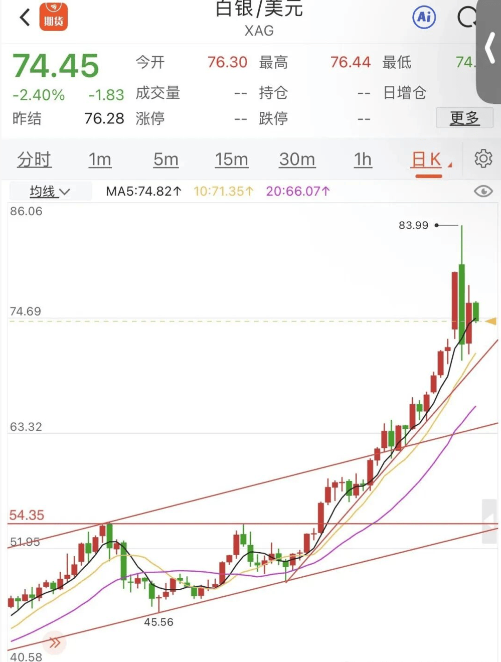 白银,史诗级暴跌后,昨天反弹也是生猛,一度达10%以上,至78美元!昨天白银单日暴跌13美元以上,直接给白银短期多头判了死刑,我说的是短期,具体中长期查看2026白银视频展望!白银就是这种奇葩产品,盘子小,价格容易操控。要么横盘几个月,让你丝毫没脾气;要么疯起来可怕,涨跌5%以上家常便饭。这也是我不敢追涨白银的原因之一!