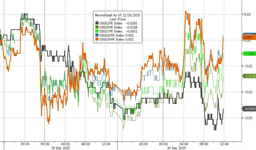 在极度萎缩的成交量中,美联储会议纪要未能唤醒“昏昏欲睡”的市场。在缺乏新催化剂、流动性偏紧的背景下,资产正在为2026年的重新定价做准备。美股整体震荡走平,贵金属则在周一的暴跌后上演了短线反弹。