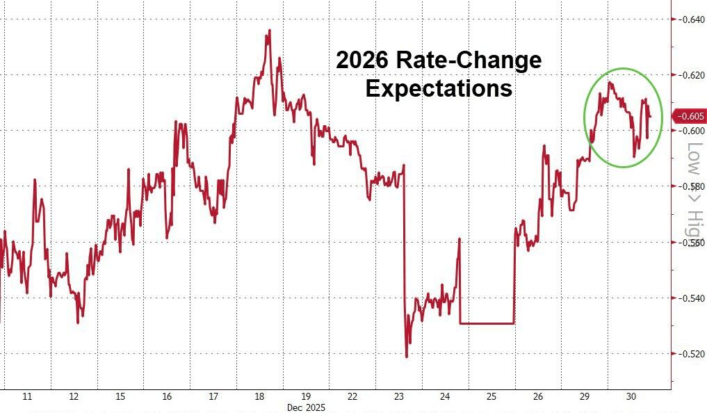 ,美联储公布会议纪要,“大多数”官员预计12月后适合继续降息,部分主张“一段时间”按兵不动。尽管联储措辞谨慎,市场依然坚持定价2026年将有约60个基点的降息空间,远比美联储点阵图暗示的要激进。