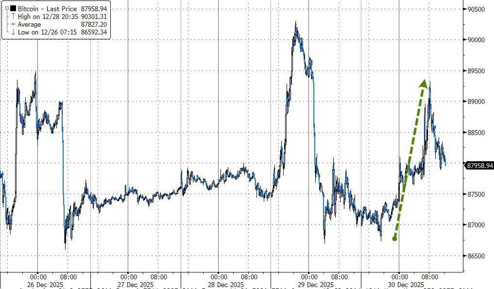 纽约尾盘,CME比特币期货BTC主力合约较周一纽约尾盘涨1.31%,报88710美元。