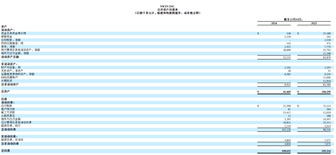1. 2024年底,纽顿集团现金几乎耗尽,账上现金仅剩10万美元,且无应收账款,对于一个上市公司而言,这几乎无法维持任何日常运营;