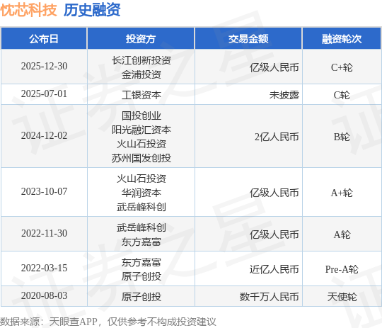 证券之星消息,根据天眼查APP于12月30日公布的信息整理,忱芯科技(上海)有限公司C+轮融资,融资额亿级人民币,参与投资的机构包括长江创新投资,金浦投资。