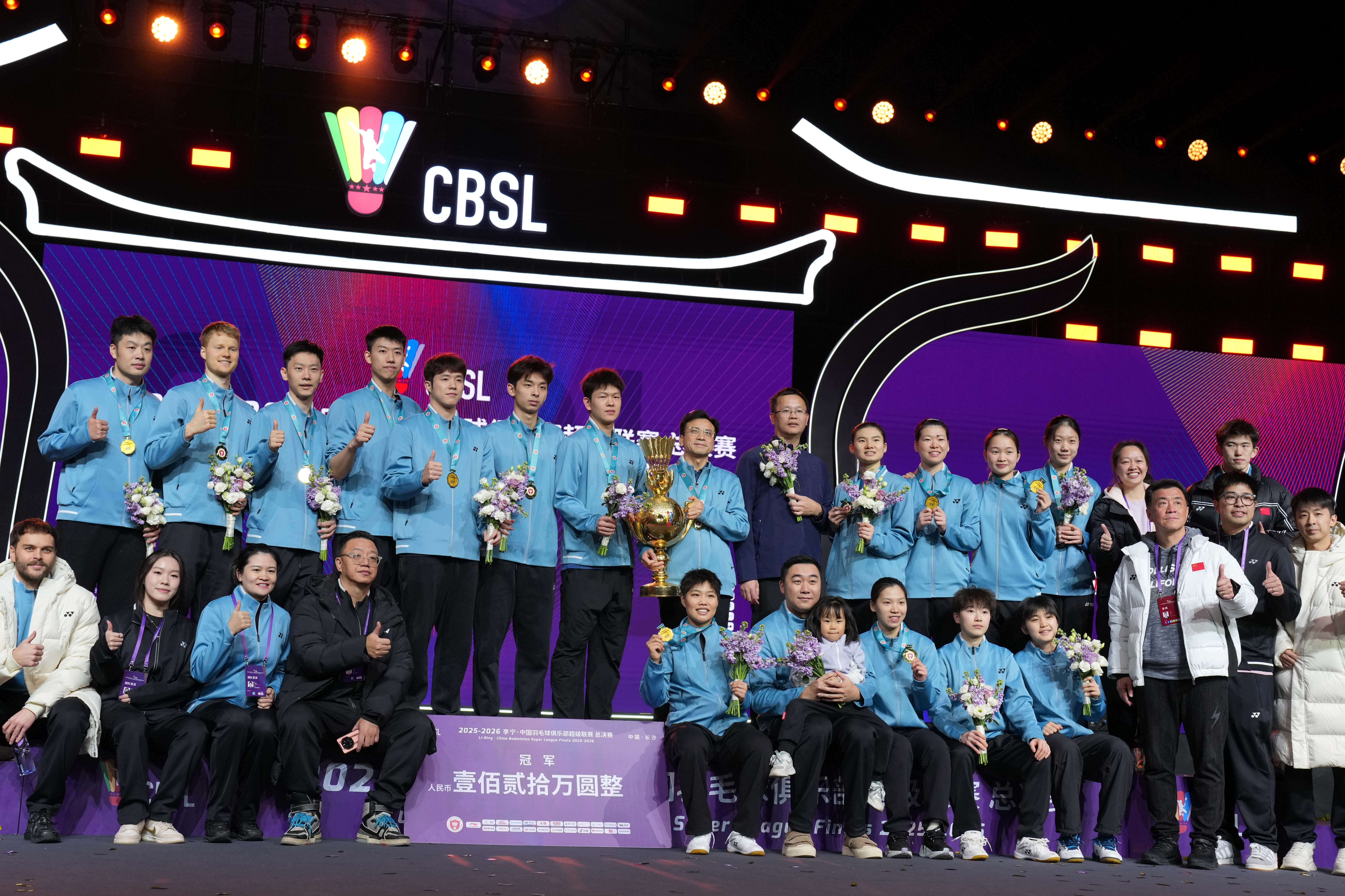 当日,在湖南长沙举行的2025-2026中国羽毛球俱乐部超级联赛冠亚军决赛中,厦门银行队3比1战胜辽宁极兔李永波队,获得冠军。