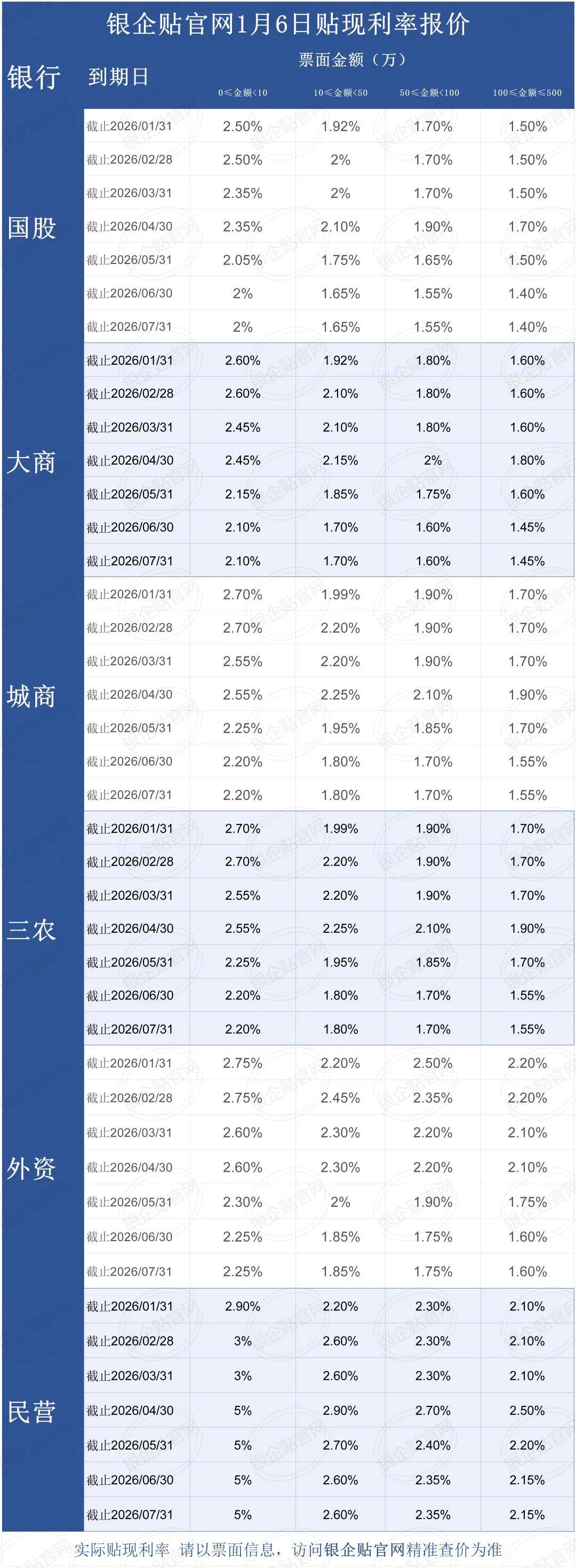 从近期银行承兑汇票贴现利率报价结构看,不同银行类别、不同金额区间之间的分化仍然存在。