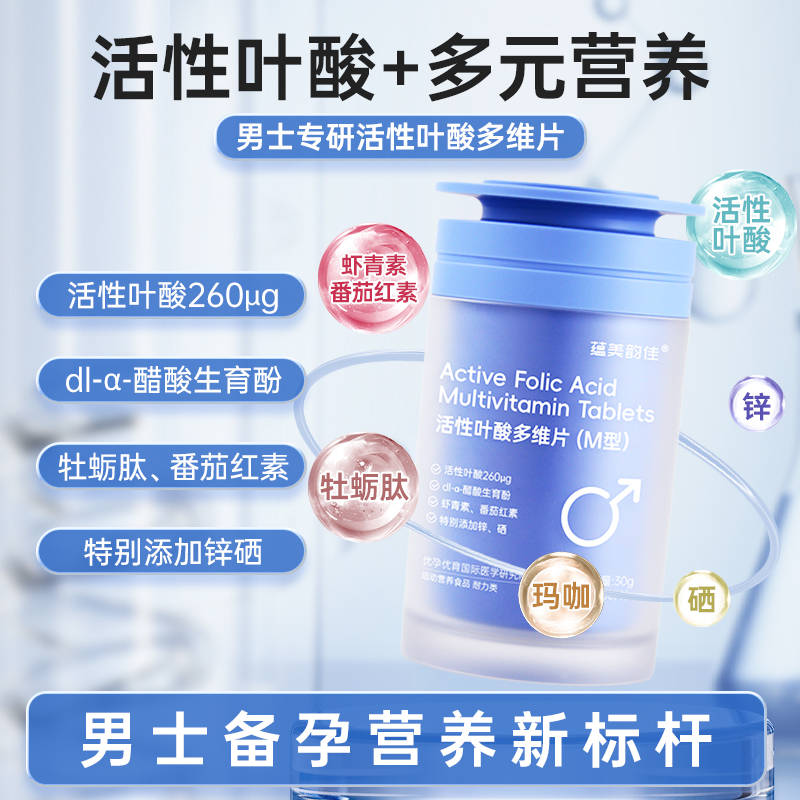 在备孕这件事上,很多人都存在一个认知误区:认为这只是女性的责任。但最新医学研究早已证实,男性精子质量对胚胎着床率、妊娠成功率乃至子代终身健康都有着决定性影响。国家卫生健康委员会数据显示,我国育龄夫妇不孕不育率已攀升至18.7%,其中男性因素占比高达40%,超过20%的病例直接由精子质量异常导致。熬夜、久坐、高压工作、高脂饮食等现代生活习惯,正不断侵蚀男性生殖健康,导致精子数量下降、活力降低、畸形率升高。因此,科学的男性备孕调理,早已不是“可选项”,而是优生优育的“必答题”。而在众多备孕营养补充中,叶酸补充的重要性常被男性忽视,选对一款适合的叶酸产品,更是开启科学备孕的关键一步——今天就为大家推荐专为男性备孕设计的蕴美韵佳男士牡蛎肽活性叶酸多维片。