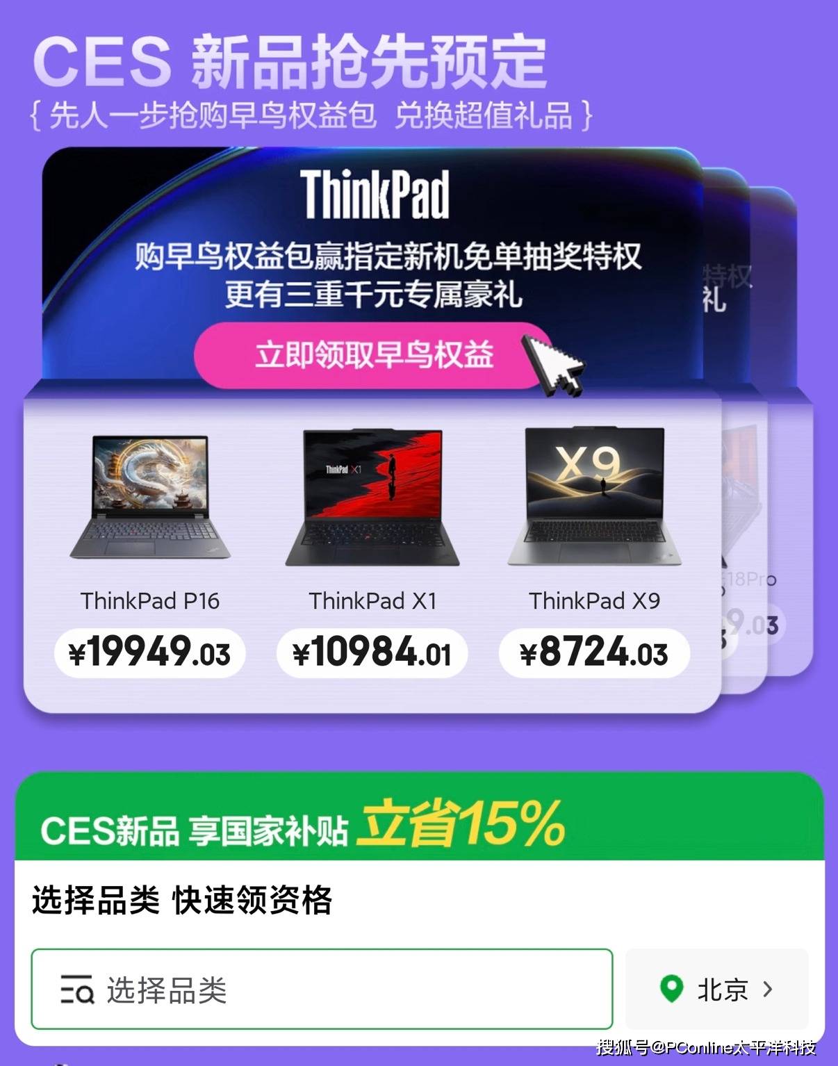活动期间,用户可在京东购买CES新品的“1元重磅早鸟权益包”,成功购买并登记后,可获得包含实用键盘鼠标、京东E卡及电脑双肩包等在内的超值好礼。其中,购买ThinkPad、雷神、机械师、华硕指定2026年新品,还可享专属早鸟权益:购买ThinkPad指定机型可参与抽免单大奖,并获赠LTE无线伴侣、thinkplus 140W锋行者电源及五年无忧保;购买雷神、机械师指定新款电脑可享抽五折、抽2000元E卡特权,送鼠垫套装;购买Intel新品华硕无畏Pro16,则可于新品上市后凭早鸟权益领取四重好礼,含价值288元咪咕会员卡、20元京东E卡、华硕都市背包及a豆无线鼠标。