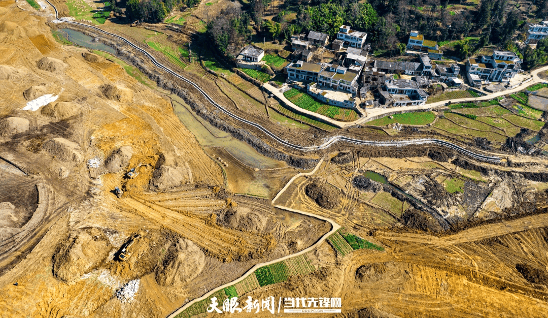 眼下正是冬春农田建设的黄金施工期。黔西市金碧镇红寨村的高标准农田建设现场,机械轰鸣。挖掘机挥舞长臂开挖沟渠,推土机来回穿梭平整土地,工人们忙着砌筑渠堤、铺设管道,一派热火朝天的繁忙景象。