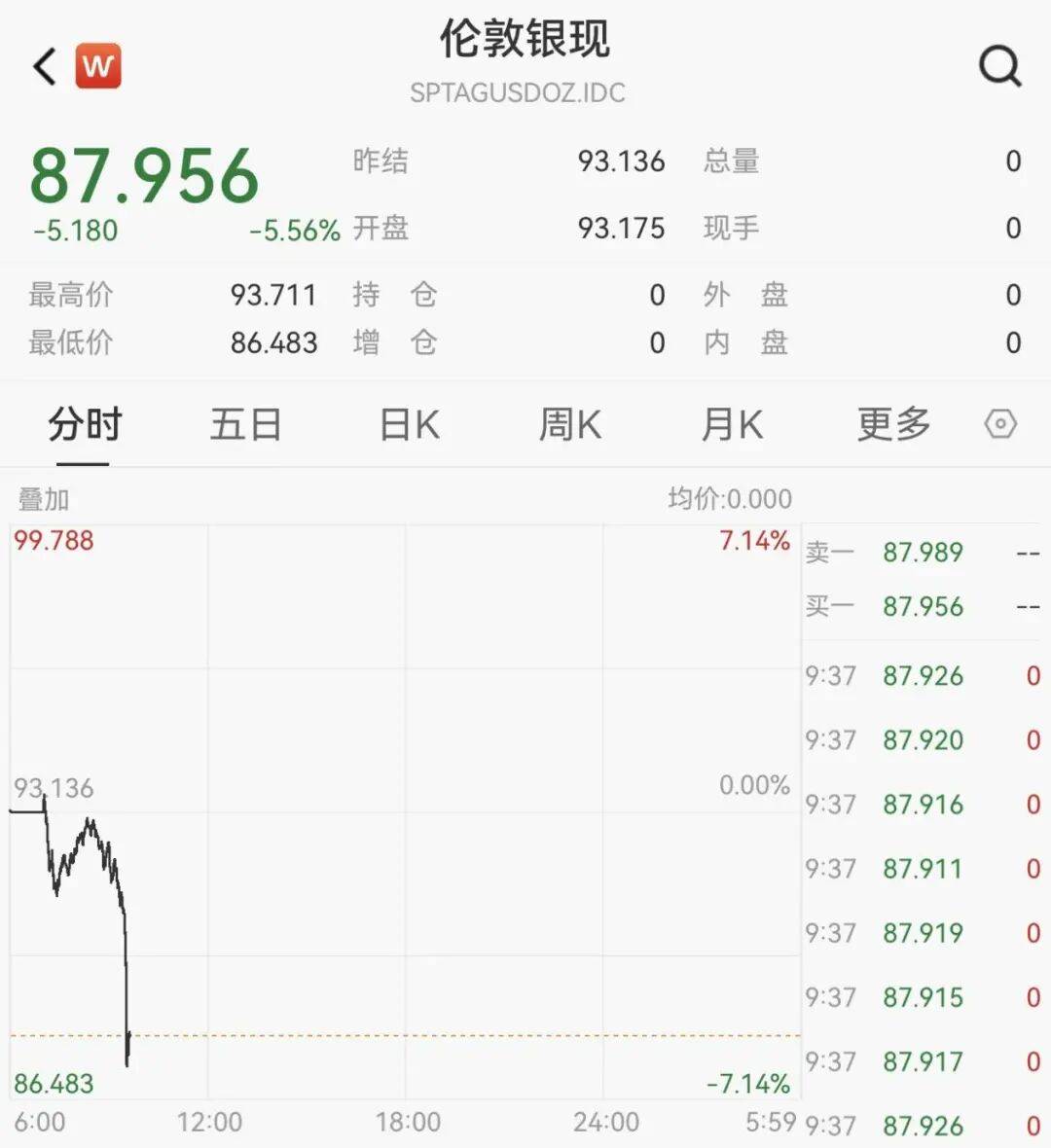 此前一日(14日),白银现货盘中暴涨超6%突破93美元/盎司,创历史新高。