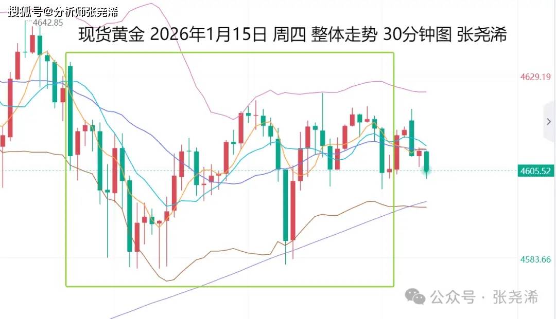上交易日周四(1月15日):国际黄金触底回升T型收跌,维持着高位震荡格局,但也令短期金价面临震荡调整走低预期,但看涨前景依然不变,如回撤走低,下方关注10日均线及中轨线支撑仍可逢低看涨,如反弹走强打破近日震荡持稳收阳,则可顺势跟进继续看涨攀升。