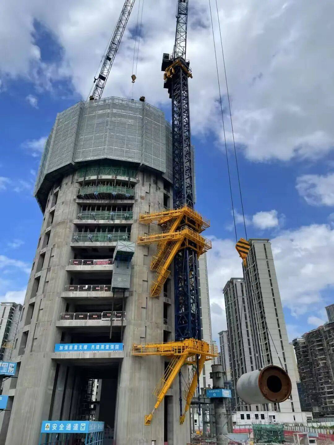 国内外首台外挂式自爬升塔吊。施工单位供图