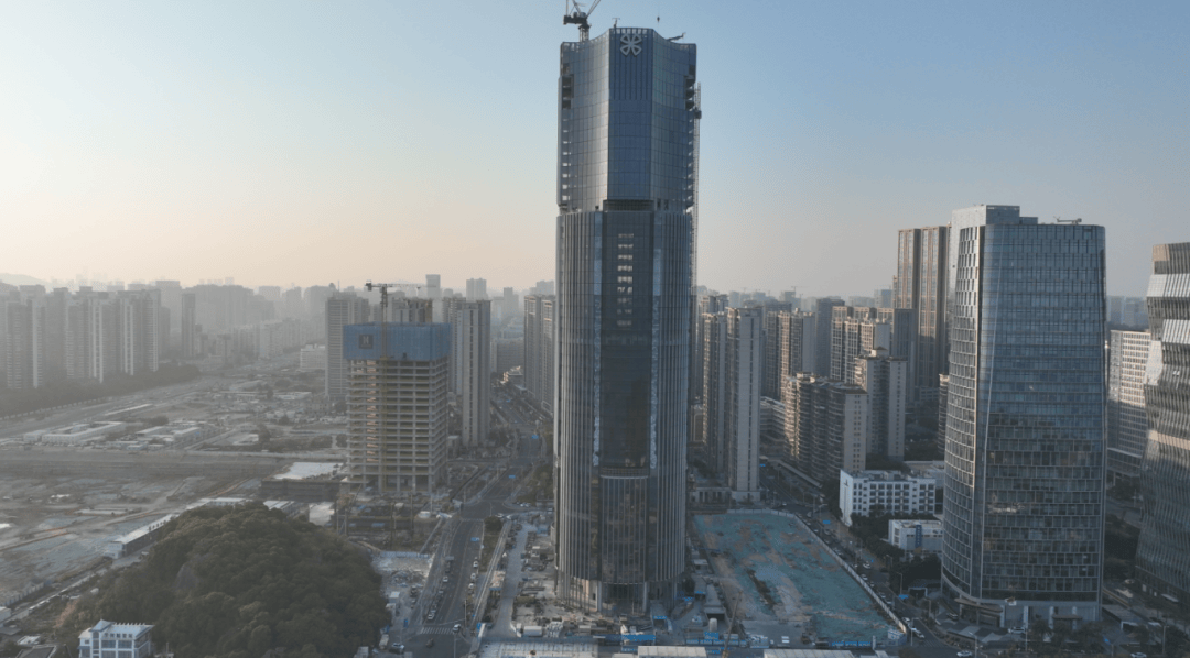 该塔吊在厦门国际银行新总部大厦项目运行中,具有五个明显优点,其中一个亮点是安全稳定性高,托架附着节点创新采用免割焊、可周转设计,在确保塔吊工作及爬升稳固、安全的同时,有效避免了长时间高空割焊节点作业的风险。塔吊最大吊重50t,塔身总高60m,顶升荷载250t。塔吊与支撑托架能够同步爬升,避免了高空切割焊接等繁琐工序,同时减少了对其他塔吊设备的依赖,将传统爬升需占用2台塔吊50个小时至72个小时,缩短至仅占用1台塔吊8个小时至15个小时,大幅提高了施工效率与安全性。