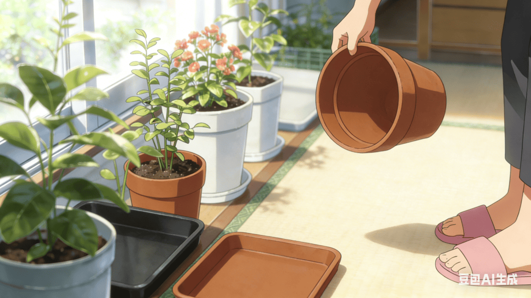 定期翻盆倒罐,检查家中、阳台、楼道、房屋周围以及小区的积水容器(如花盆托盘、闲置瓶罐、废旧轮胎等),及时清理积水。