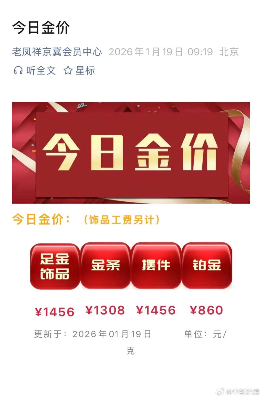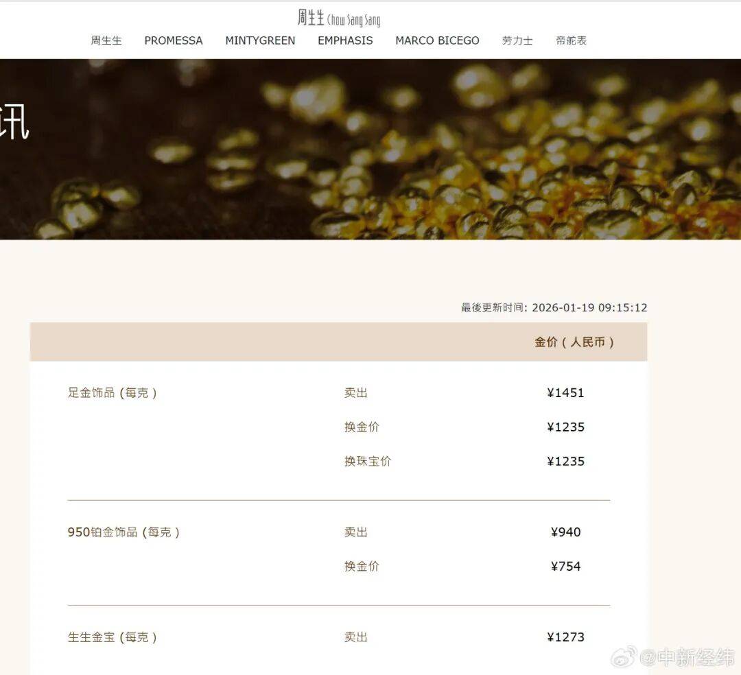 金饰克价一夜上涨20多元