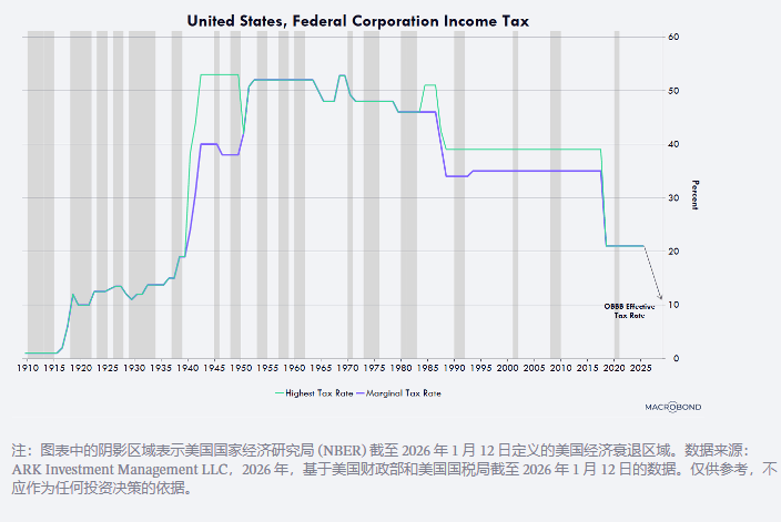 例如,任何在2028年底之前在美国开工建设制造工厂的企业,都可以在建筑投入使用的第一年实现全额折旧,而不再像过去那样分30到40年折旧。设备、软件以及国内研发支出同样可以在第一年实现100%折旧。这一现金流优惠政策已在去年的预算案中被永久确立,并追溯适用于2025年1月1日。
