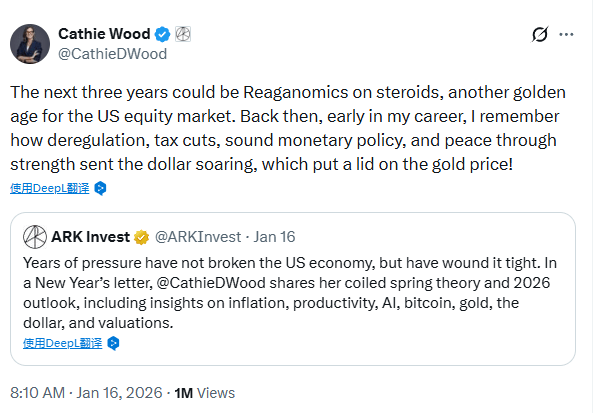 “木头姐”的2026展望:“里根经济学”升级版,美股继续“黄金时代”,美元走高压制黄金