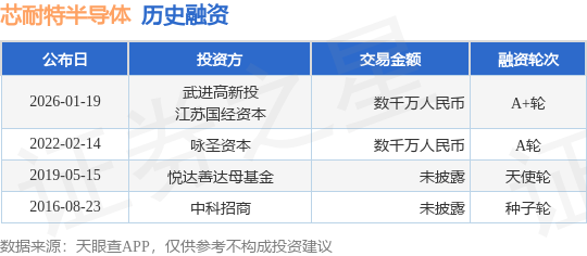 证券之星消息,根据天眼查APP于1月19日公布的信息整理,南京芯耐特半导体有限公司A+轮融资,融资额数千万人民币,参与投资的机构包括武进高新投,江苏国经资本。