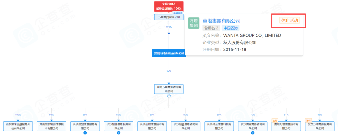 万塔集团成立于余2016年11月,注册地香港,主要通过100%子公司深圳市码内科技有限公司(下称“码内科技”)在国内开展业务,旗下直接持股以及间接持股多家子公司。