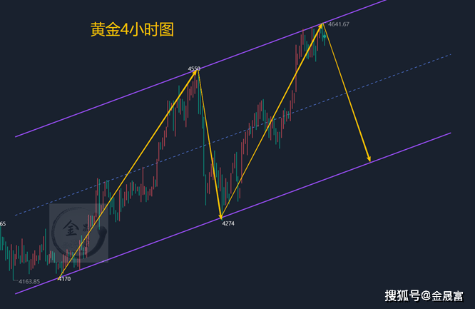 从技术面来看,今天有两点改变,第一周三k线收在布林上轨之下,已经没有周二,周三那么激进极强的表现,第二4小时周期布林已经收口,5,10日均线形成了勾头表现,这波黄金下行明显,今天非常有必要调整一波,下方线看周三的关键支撑4570,再看本周目标4520-4500区间带。因此,今天继续提醒大家,在当前疯狂的多头表现下,谨慎对待这波上涨,不要追高,小心2米的大刀砍下来。当然,即使下跌下来,黄金也是多头趋势,这一点没有变。晚上关注美失业金数据影响。国内金这两天也是一直在强调风险,也在强调会走出调整空间,综合来看,今日黄金短线操作思路上金晟富建议反弹做空为主,回调做多为辅,上方短期重点关注4625-4635一线阻力,下方短期重点关注4520-4500一线支撑,各位朋友一定要跟上节奏。要控制好仓位及止损问题、严格设止损,切勿抗单操作。具体点位以盘中实时为主,欢迎前来体验,交流实时行情,进群关注实时单。