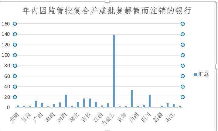 内蒙古成为注销银行最多的省份,达139家,这与当地农信系统整合直接相关。今年5月,注册资本580.2亿元的内蒙古农村商业银行成立,一次性整合120家农信机构及村镇银行,成为全国首个省级统一法人银行。类似案例不断涌现,10月农业银行便获批收购克什克腾农银村镇银行并设分支机构。四川、山东、河南等地注销银行数量也均超20家。
