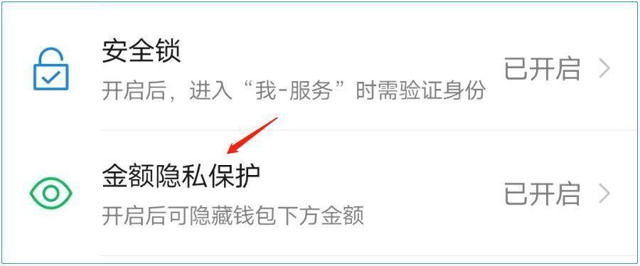 4.进入到安全保障功能以后,就可以看到“金额隐私保护”了。这里面直接打开以后,就可以隐藏我们钱包下面的金额了!
