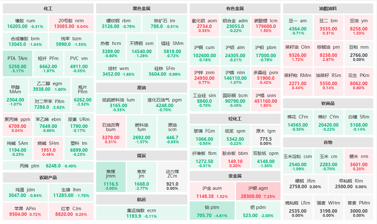 化工板块,PTA跌超3%,瓶片、对二甲苯跌超2%。