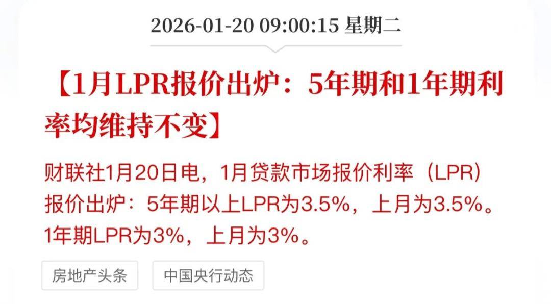 1年期LPR为3%,5年期以上LPR为3.5%,均与上月持平,未作调整。