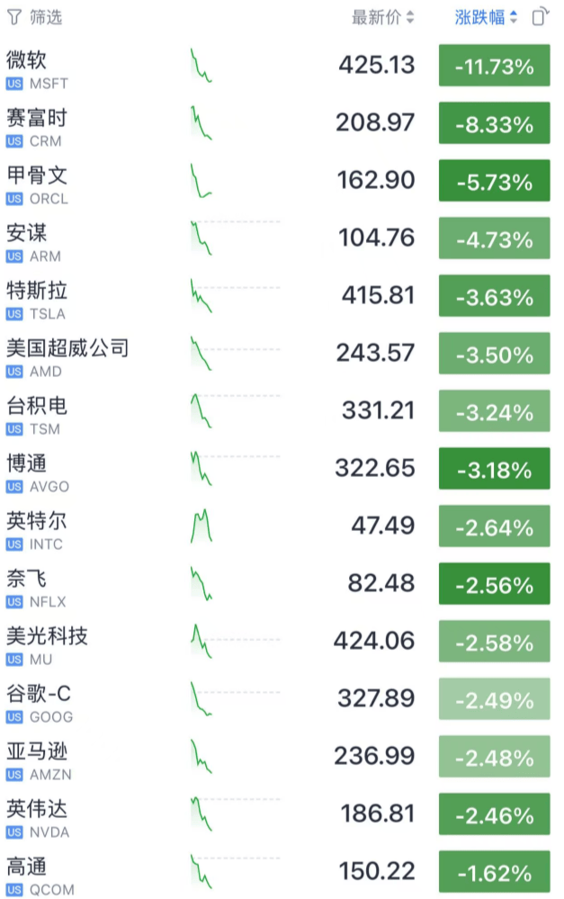 科技股集体跳水。