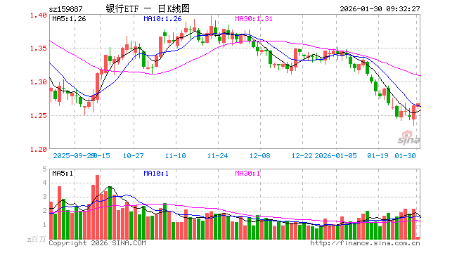 银行ETF(159887)业绩比较基准为中证800银行指数收益率,管理人为富国基金管理有限公司,基金经理为殷钦怡,成立(2021-05-12)以来回报为26.19%,近一个月回报为-6.06%。