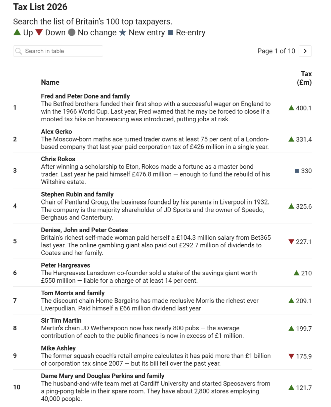 根据《泰晤士报》最新发布的英国年度纳税榜单,英国博彩公司Betfred创始人、兄弟俩——弗雷德·多恩和彼得·多恩(Fred and Peter Done)首次登上纳税榜第一名,比明星、英超球员、贵族和各路富豪都多。