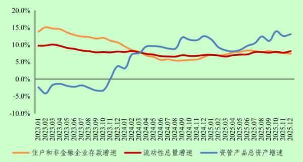 央行数据显示,2025二季度以来,金融机构资管产品规模加快增长。10月末,资管产品规模增速达到资管新规实施以来的最高水平。年末资管总资产余额合计120万亿元,同比增长13.1%,全年累计增加13.8万亿元,同比多增2.2万亿元。各类资管产品中,资金链上游的银行理财和公募基金市场份额较大,增长也较快,年末增速分别达到10.6%和14.3%。
