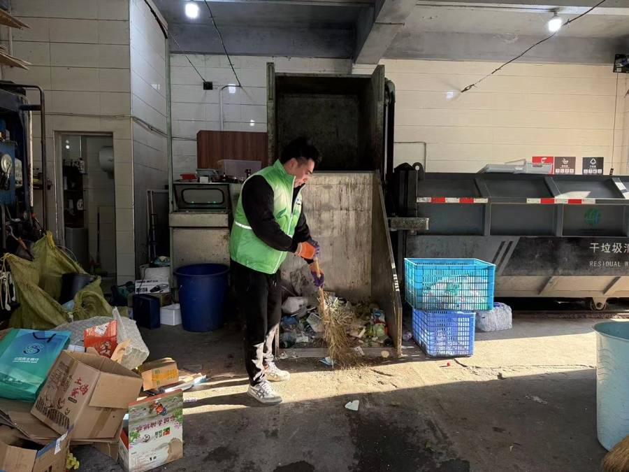 物业负责人问清那只被当成垃圾丢掉的包袋的基本情况后,让夫妇俩到生活垃圾房“去看看”,说垃圾清运员小童师傅,已经在那里等了4个多小时了。