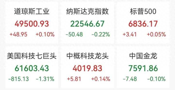 黄金股方面表现不俗,科尔黛伦矿业股价上涨超过7%,哈莫尼黄金、金罗斯黄金和泛美白银的股价也分别上涨了超过6%,巴里克黄金涨幅超过5%,盎格鲁黄金的涨幅接近5%。至于中概股,它们的表现则有些分化,纳斯达克中国金龙指数下跌了0.10%。腾讯音乐上涨了超过4%,百胜中国涨幅超过3%,禾赛科技和网易的股价也分别上涨了超过2%。反之,晶科能源下跌近3%,阿特斯太阳能、新东方和阿里巴巴的股价则都下跌了超过2%,理想汽车则下跌了接近2%。此外,黄金和白银的价格在昨晚大幅上涨。黄金现货收盘报5042.808美元/盎司,涨幅超过2.4%。白银现货一度上涨超过5%,最终收盘报77.338美元/盎司。