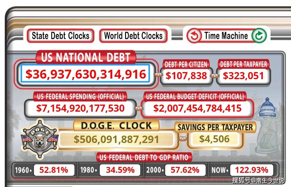 今年1月初,也就是特朗普即将再次担任美国总统的前20天,美国国债(下午简称美债)总额突破了36万亿美元。5个月后,也就是2025年6月初的美债余额已攀升至36.94万亿美元,即将突破37万亿。