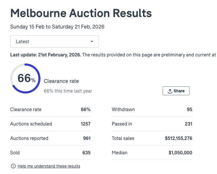 成交635套,清盘率为66%,成交价格中位数105万澳元。