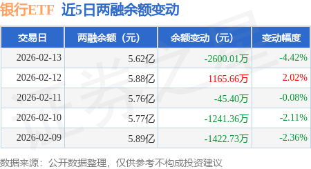 证券之星消息,2月13日,银行ETF(512800)融资买入8981.39万元,融资偿还1.15亿元,融资净卖出2561.4万元,融资余额5.46亿元。