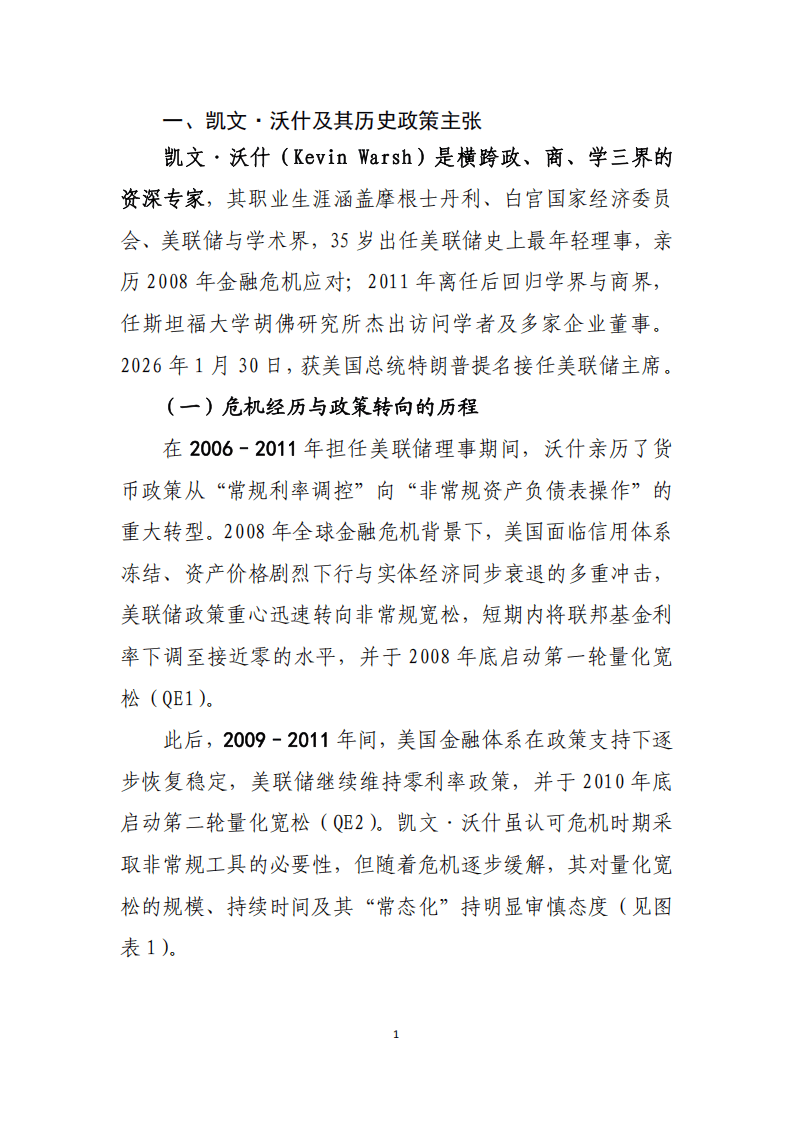 沃什是横跨政商学三界的资深专家,35岁成为美联储史上最年轻理事,亲历2008年金融危机应对,危机后对量化宽松常态化持审慎态度,其政策核心关切集中在央行对通胀的制度性管控、反对货币政策替代市场纪律、兼顾金融稳定性、重视央行信誉与独立性四方面,政策导向以通胀与金融稳定为核心约束,工具运用保持审慎灵活。