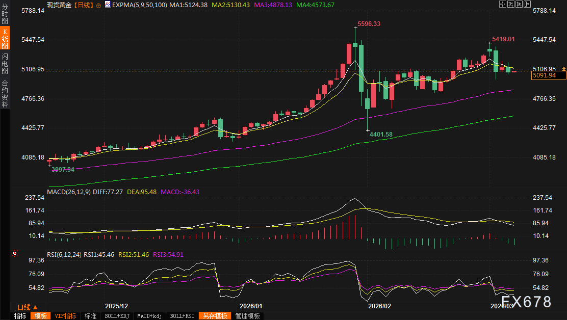 汇通财经APP讯——全球金市正上演一场惊心动魄的“避险悖论”:中东冲突进入第六天,油价狂飙、通胀阴云密布,本该让成为投资者避风港的时刻,却被美元走强和美债收益率飙升彻底逆转。周四(3月6日),黄金重挫1.2%,收于每盎司5080.88美元,盘中虽一度冲上5194.59美元高点,却终究难敌两大“杀手”联手压制。4月黄金结算价也同步下跌1.1%至5078.70美元。这一幕,让无数多头直呼“避险失效”!周五(3月6日)亚市早盘,现货黄金震荡微涨,目前交投于5095美元/盎司附近。