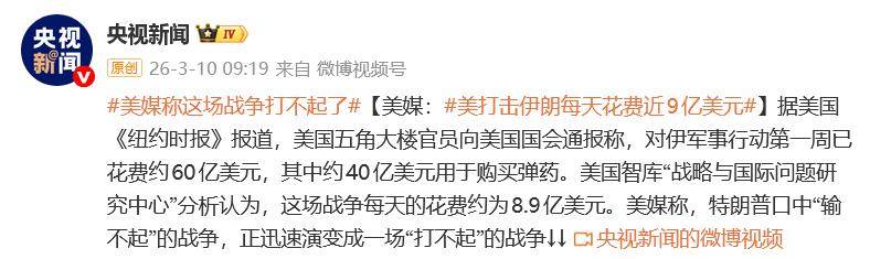 此外,另一则消息显示,在最近的国会简报中,国防官员透露,美军在战事初期的两天内,消耗了价值56亿美元的弹药。与此前公开的数据相比,这一支出规模和弹药消耗速度都远远超出了外界的预期。美国智库战略与国际问题研究中心早前发布的一份报告估计,美军在行动的前100小时内的花费已经达到37亿美元,折合每天的支出大约为8.9亿美元。