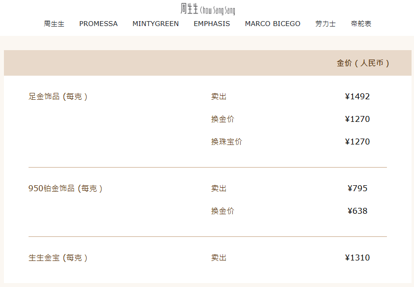 其中,周生生金饰1492元/克,单日跌55元。