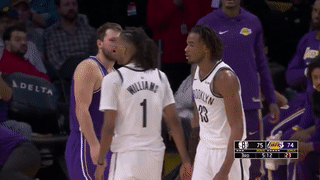 在湖人116-99击败篮网的比赛中,第三节东契奇和扎伊尔-威廉姆斯发生肢体冲突,东契奇推开了扎威,扎威则是一巴掌打到东契奇的嘴巴,裁判吹罚双方技术犯规,这是东契奇本赛季第16次吃到技术犯规。