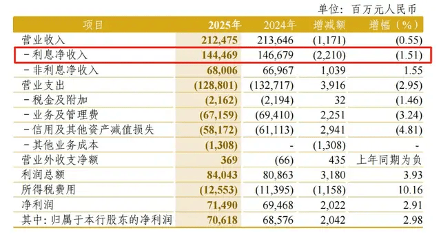 2025年信用卡累计发卡量1.29亿张,勉强增长4.6%,但贷款余额同比下降5.28%,总交易额下滑10.66%,业务收入更是大跌14.6%,而且这已经是连续三年双降。