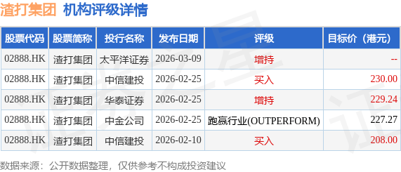 截至2026年4月8日收盘,渣打集团(02888.HK)报收于177.0港元,上涨8.26%,成交量300.12万股,成交额5.25亿港元。投行对该股的评级以增持为主,近90天内共有2家投行给出增持评级,近90天的目标均价为223.63港元。太平洋证券最新一份研报给予渣打集团增持评级。