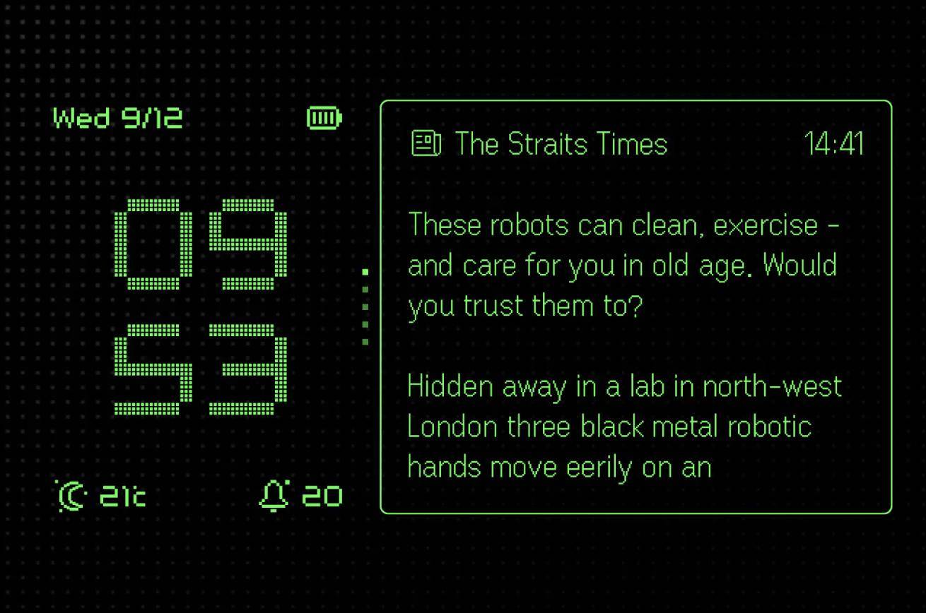 该机内置一块 640×350 分辨率 60Hz Micro LED 单色(绿色)显示屏,最高亮度可达 1200 尼特,并可通过传感器自动调节亮度,保证在日光环境下依然清晰可见。用户亦可额外购买 Even R1 智能戒指,利用体感方式对眼镜进行交互。